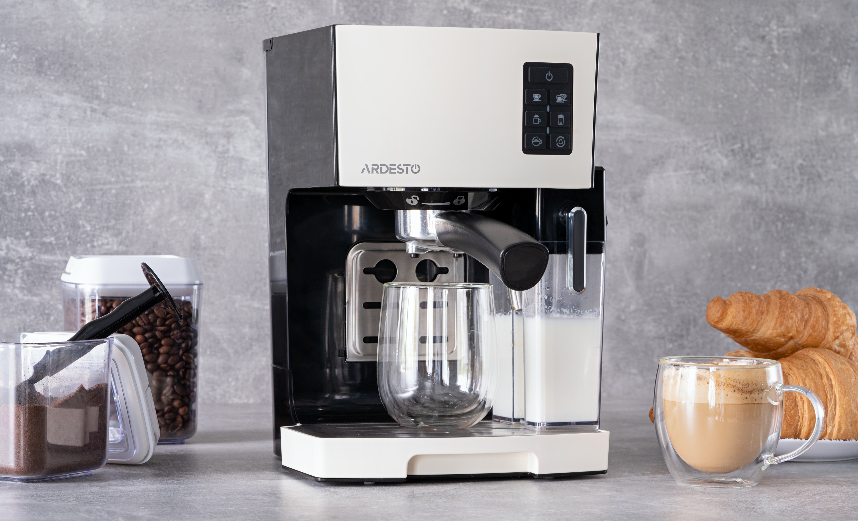 Ardesto ECM-EM14S вміє готувати як запашний еспресо, так і кавові напої на основі молока – капучино та лате. Для цього є спеціальній резервуар. Для еспресо передбачено два режими та стальні фільтри різного об’єму. Для зручної роботи з кавоваркою тримач фільтра оснащений пластиковою ручкою, а подвійний вихід забезпечує приготування двох порцій напою одночасно. Мірна ложка з комплекту постачання призначена для точного дозування та пресування меленої кави.