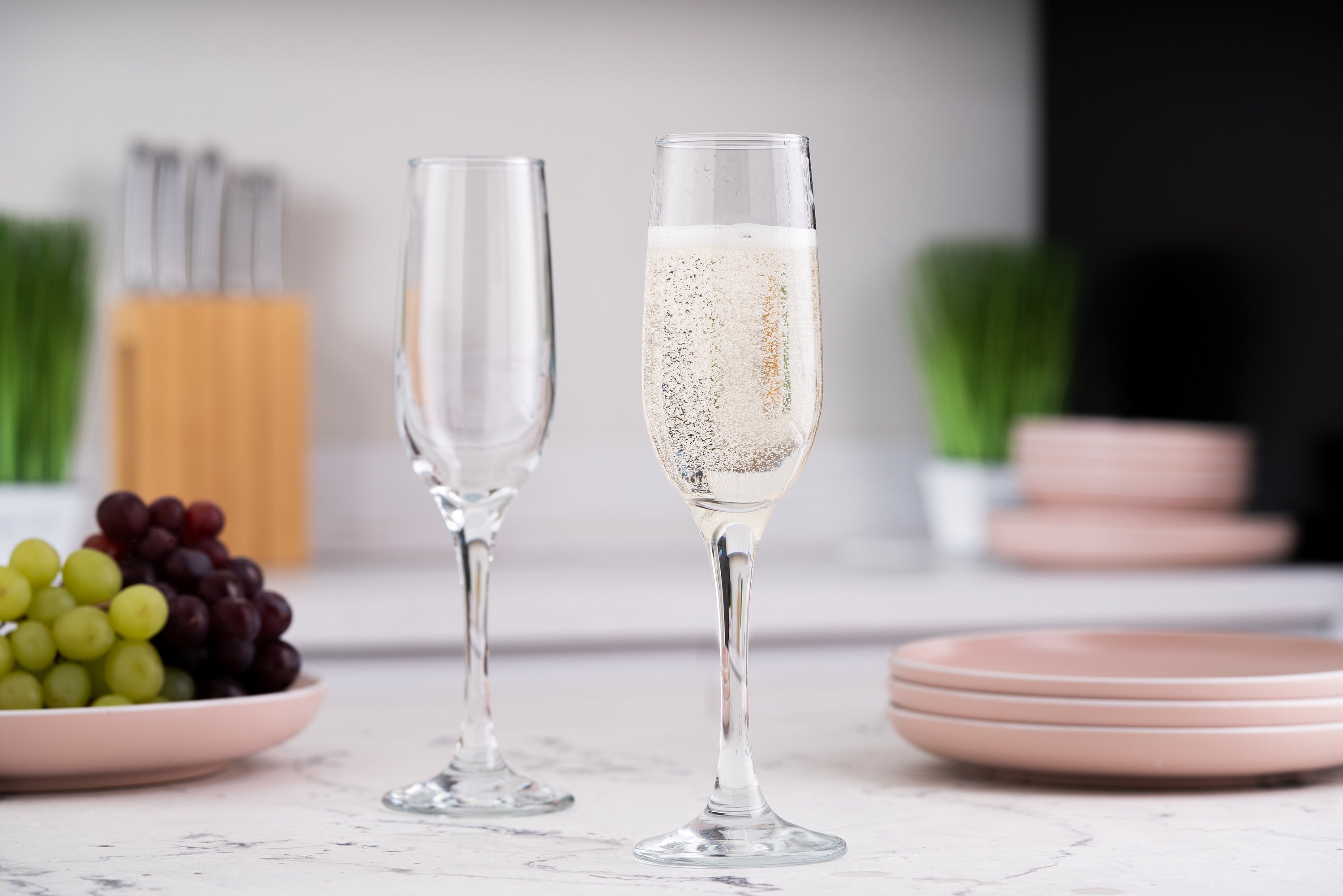 ARDESTO glasses with a capacity of 215 ml with a narrow bowl and a tall stem will come in handy for serving sparkling wines and champagne. The elongated shape promotes the upward movement of bubbles, along with which the aroma rises, and the elegant leg prevents the drink from heating up. There is also an aesthetic component: it is pleasant to watch how the bubbles stretch upward in thin threads.