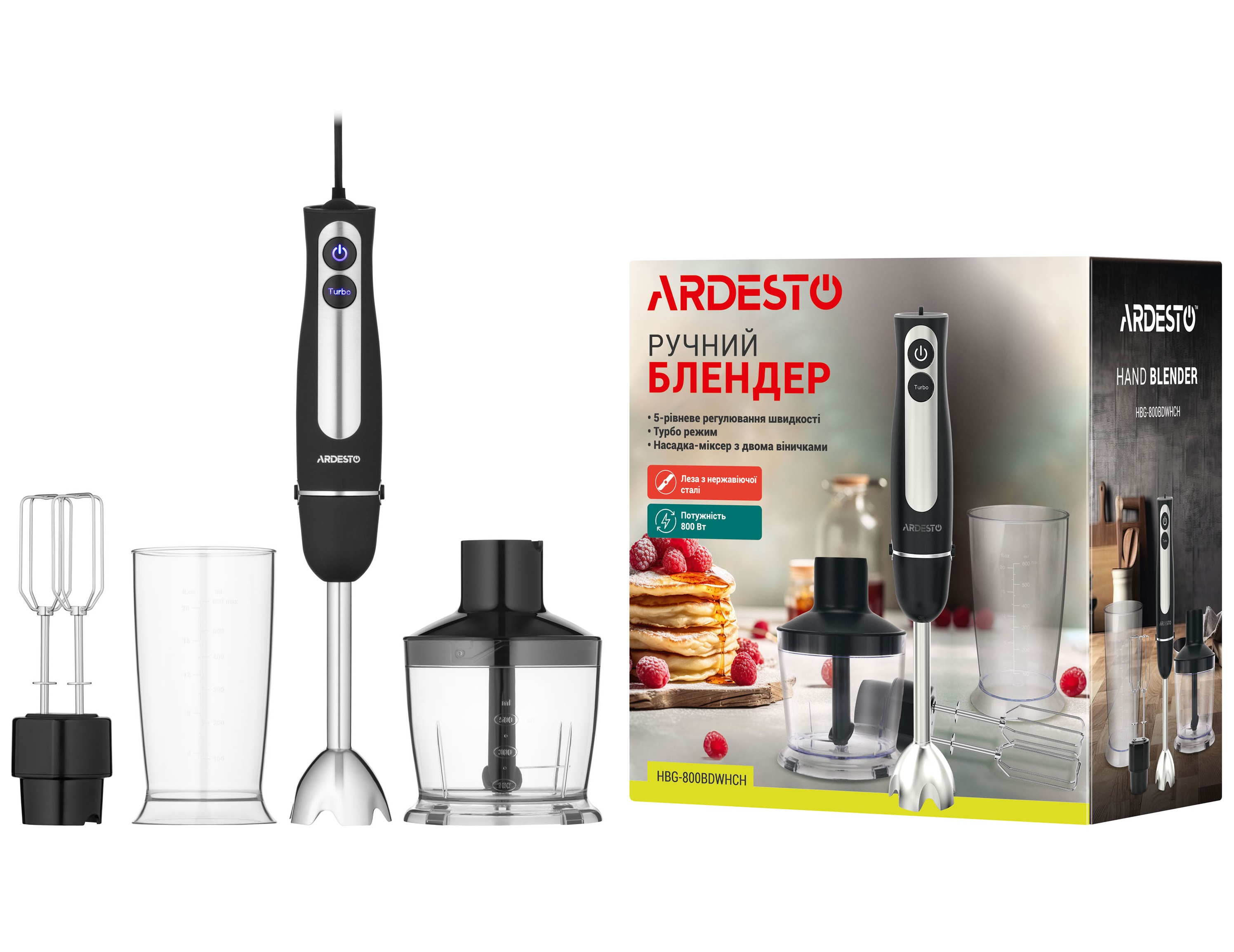 Ardesto submersible blender HBG-800BDWHCH, 800 W, 3 in 1, 600 ml bowl, black and silver