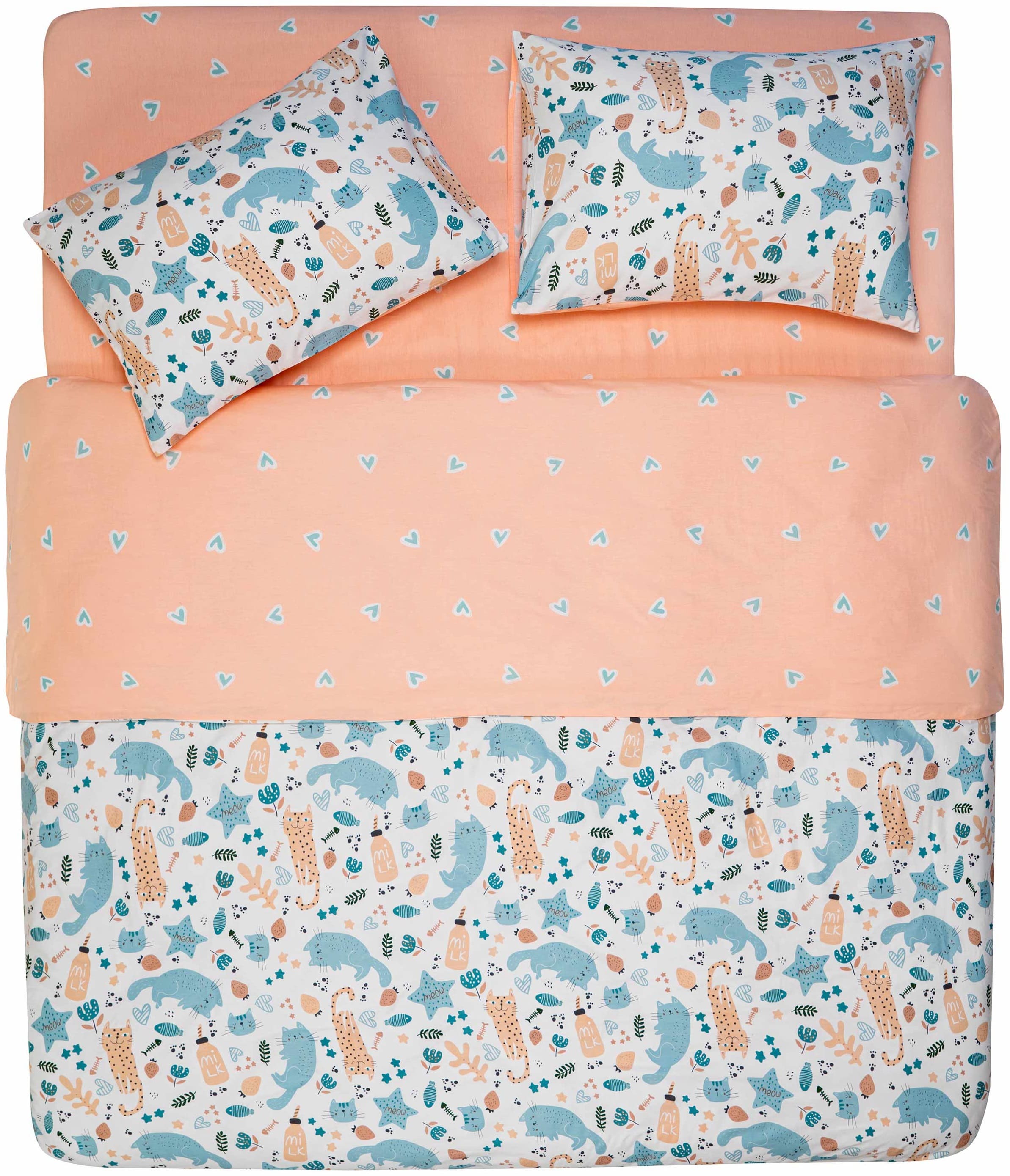 1.5-sleeping size Bedding Set ARDESTO Gloria, cats peach ART1622CP