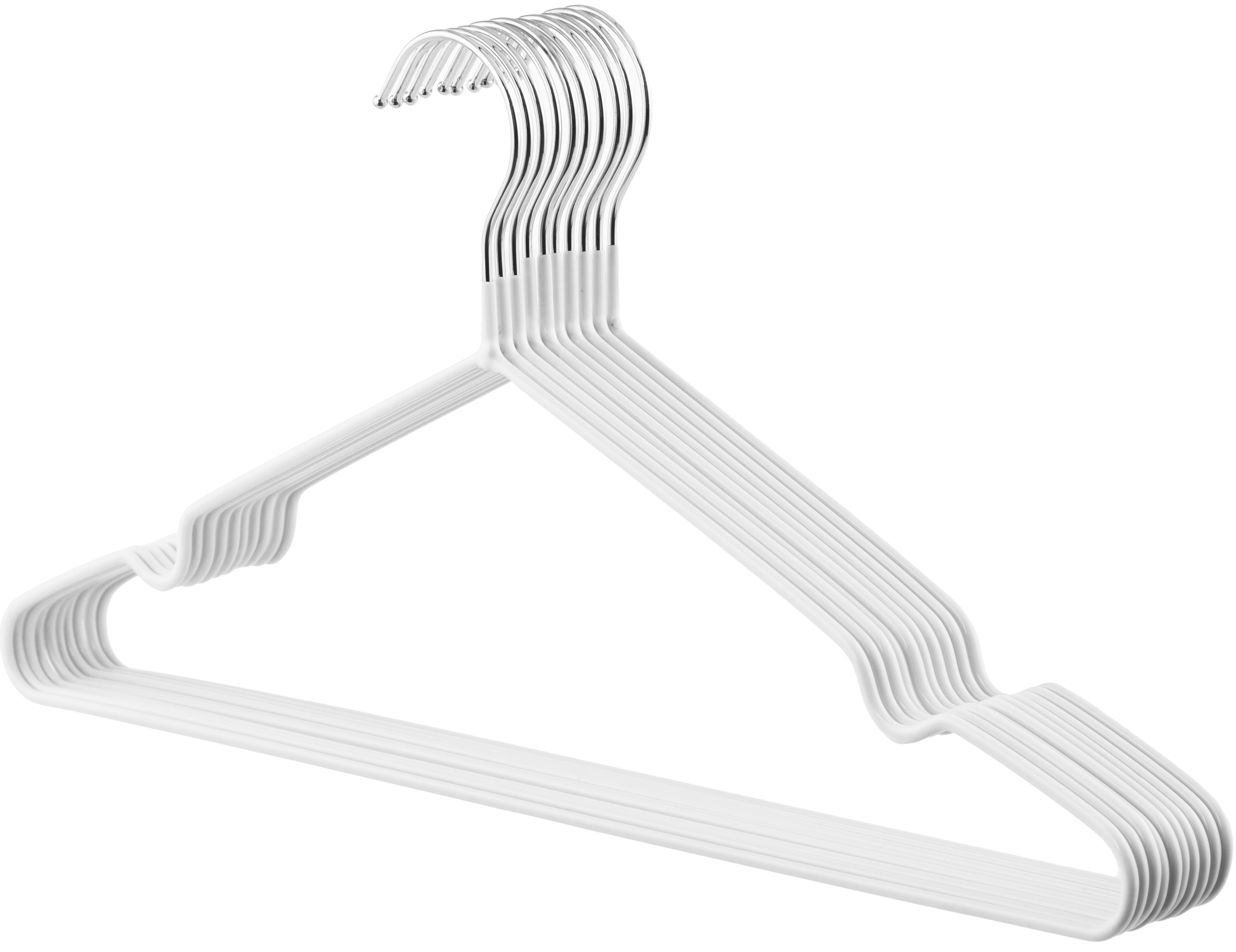 A hanger is an essential attribute for every wardrobe or clothing closet. Reliable and durable ARDESTO hangers are made of metal and PVC. These versatile models can withstand the weight of any clothing–from light dresses to heavy coats. The sturdy hook does not rotate. The top bar has an indentation, making it suitable for garments with thin straps. The hangers' dimensions are 40.5 × 19 cm, with a diameter of 2.2 × 3 mm, fitting clothing sizes 46-50. The set includes 10 white hangers. With ARDESTO hangers, your clothes will not deform and will always be neatly stored.