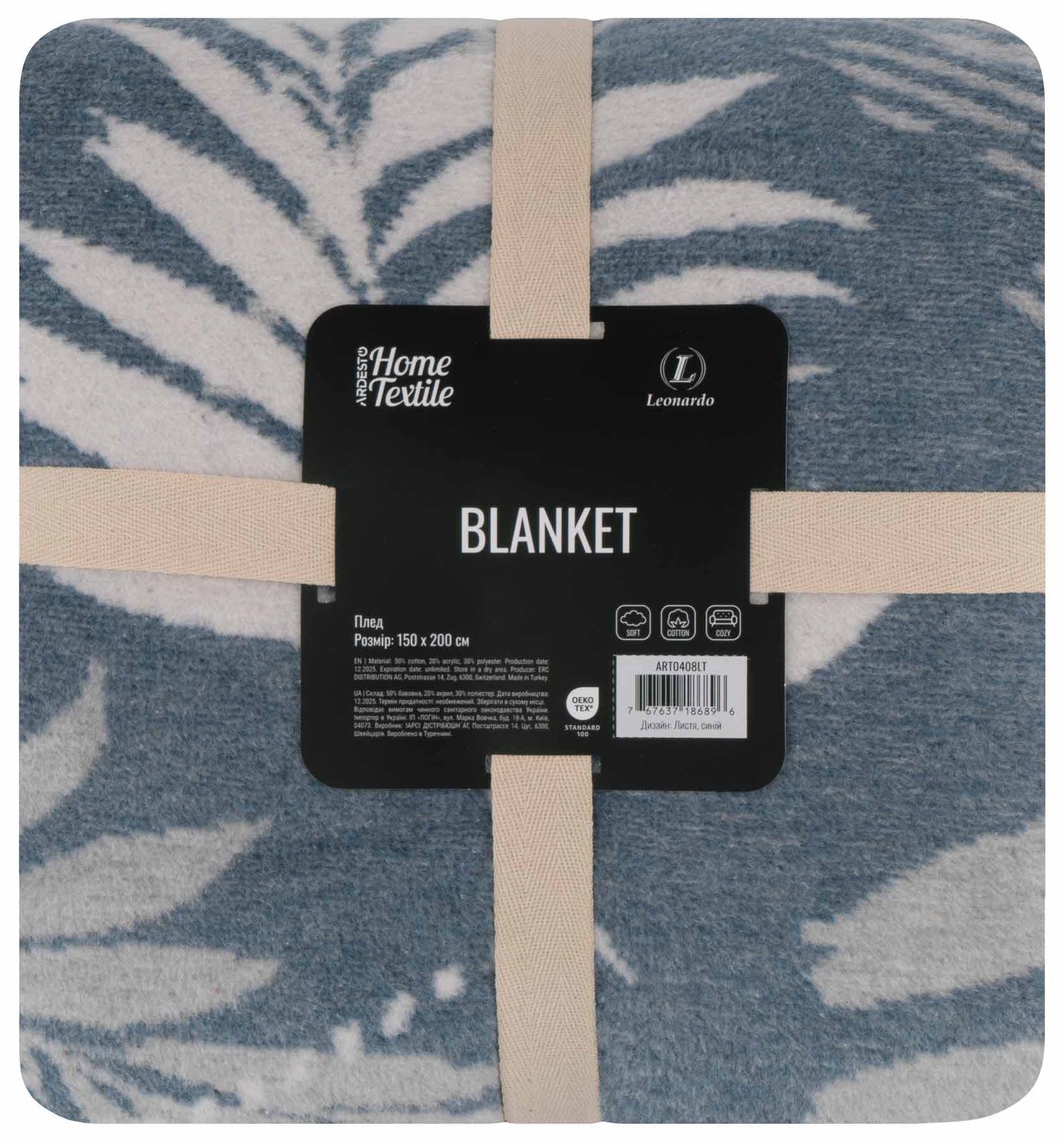 Blanket ARDESTO Leonardo 150х200cm, 50% cotton, 30% polyester, 20% acrylic, leaves, blue