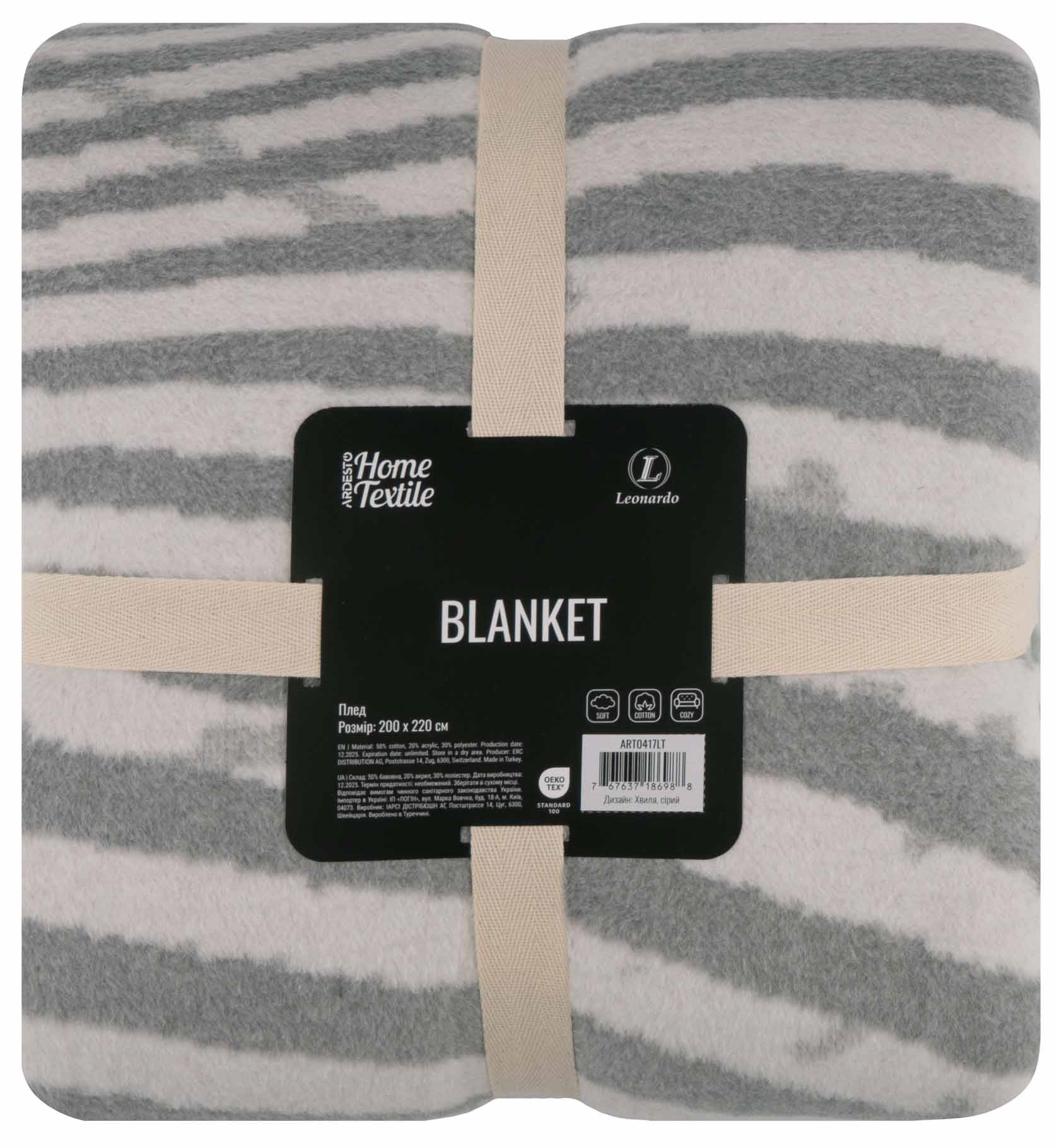 Blanket ARDESTO Leonardo 200х220cm, 50% cotton, 30% polyester, 20% acrylic, wave, grey