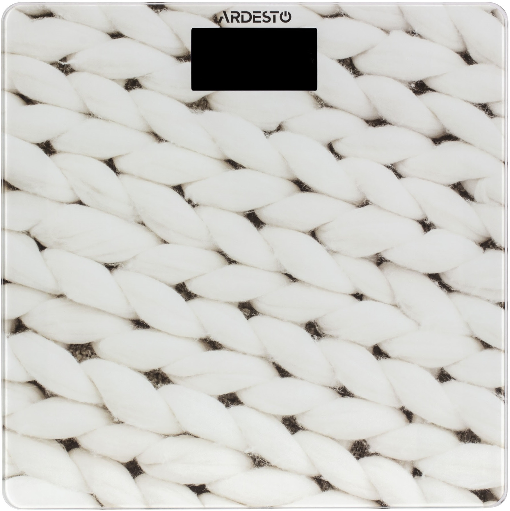 Body scales with designer drawings. Designed for measuring body weight and equipped with a built-in thermometer and a function of comparison of previous weight. Model SCB-965KNIT is made in an exclusive design.