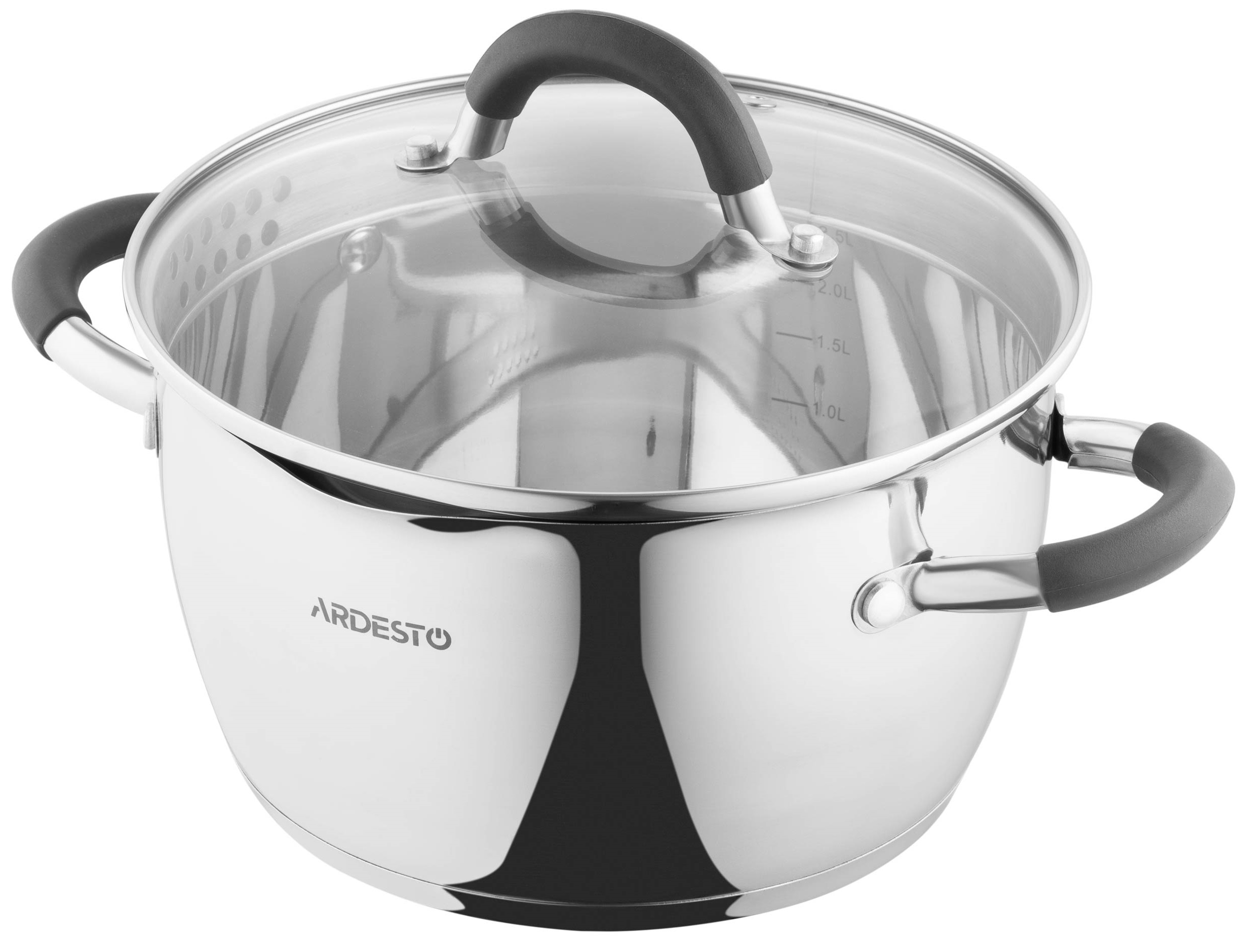 The ARDESTO Gemini Livorno 3.2 l stainless steel pot is equipped with silicone coated handles. To drain the water in the design of the pan, a spout and special holes in the lid are provided. For exact observance of the recipe, a measuring scale is applied on the walls. Comes with a glass lid with a steam hole. Cookware is compatible with gas, electric, glass-ceramic, halogen and induction cookers. It is not recommended to wash in the dishwasher.
