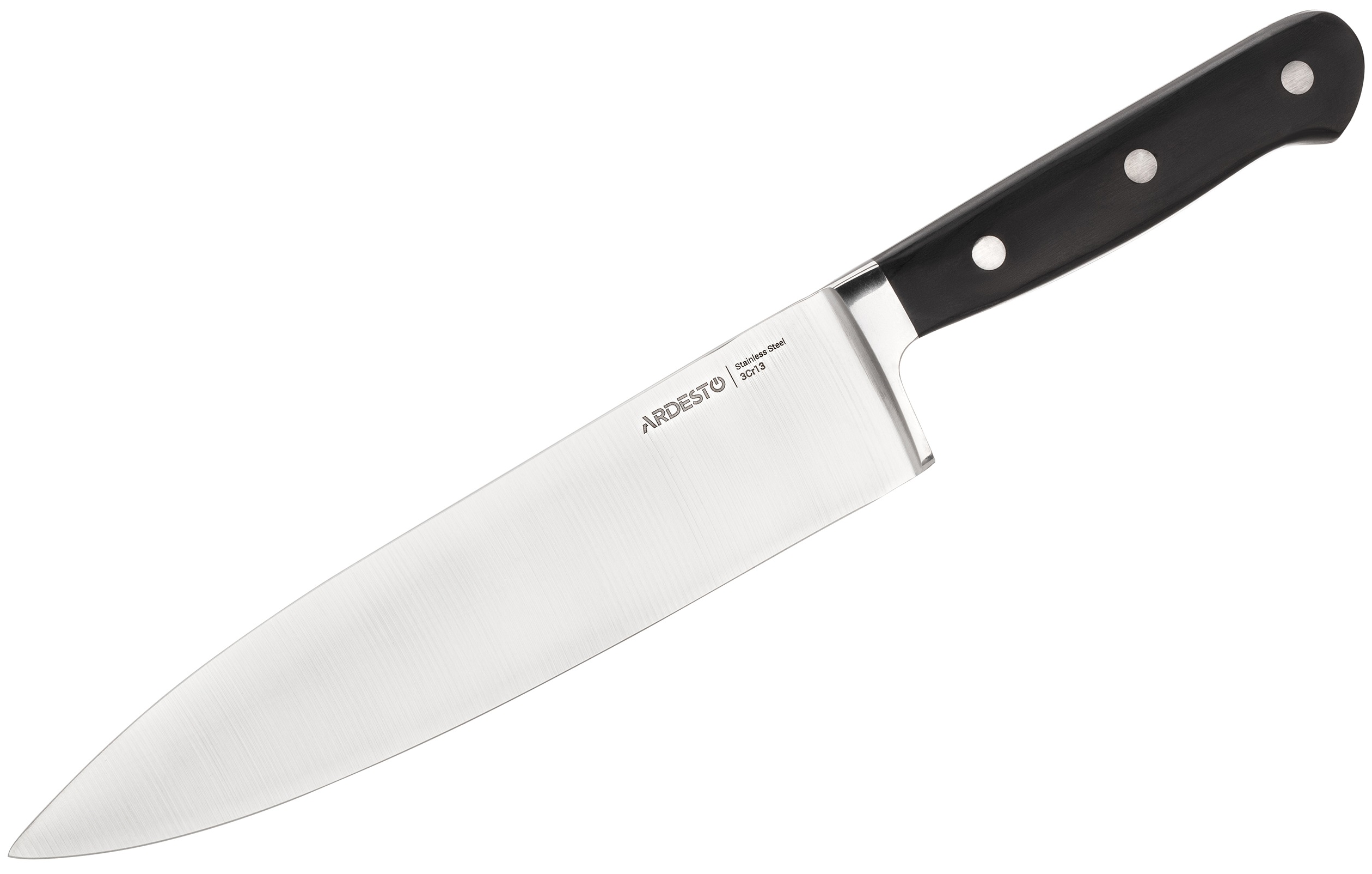 Chef's knife Black Mars AR2031SW. The blade is made of 3CR13 stainless steel and the handle is made of wood. Not suitable for use in dishwashers.