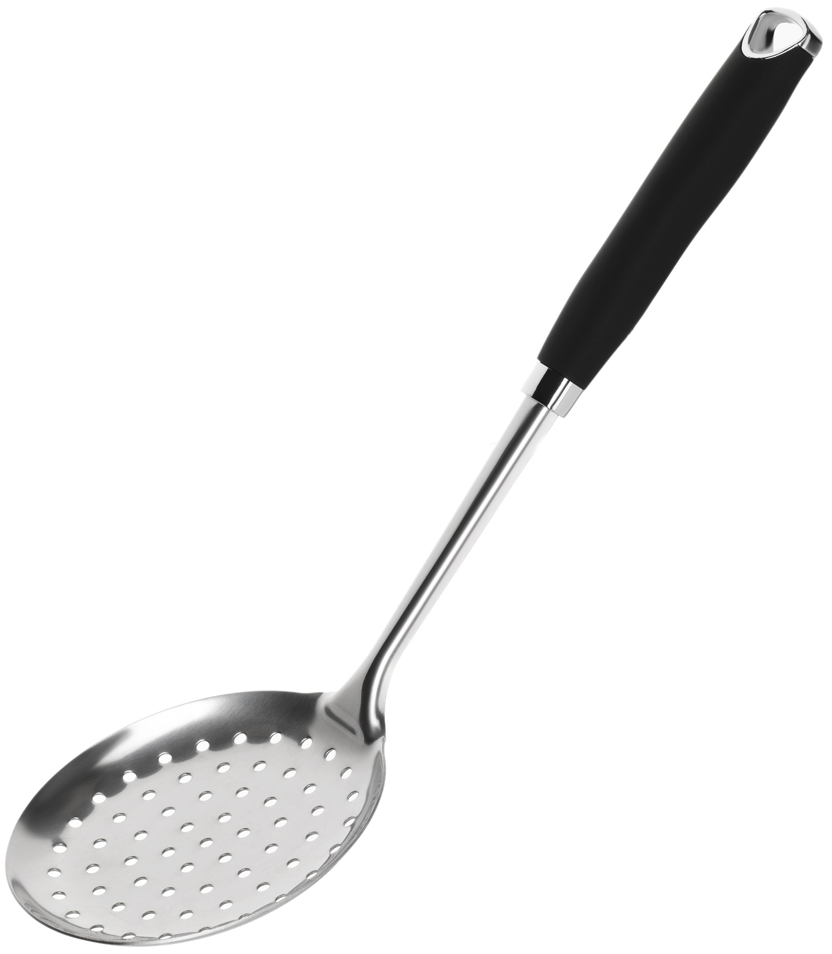 Comfortable and stylish stainless-steel skimmer is 35 cm long and 11,8 cm in diameter. `it is equipped with ergonomic plastic handle that does not heat up and is pleasant to touch. It will be a reliable assistant in cooking in large and medium-sized dishes. Do not wash in the dishwasher.
