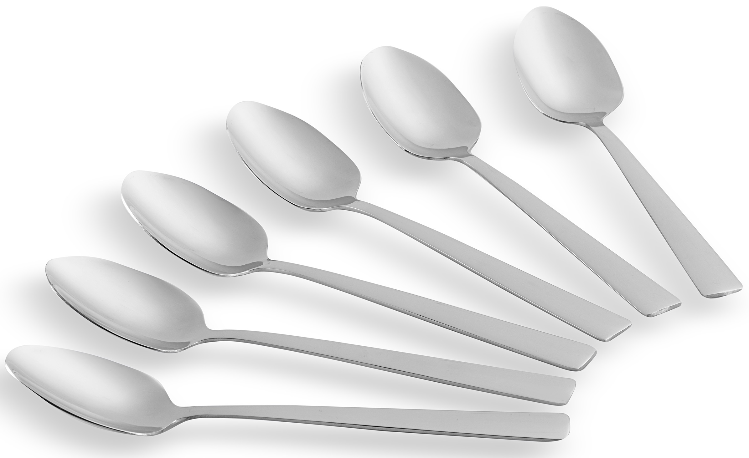 Six-piece Gemini Como teaspoon set. The spoons are made of stainless steel with a mirror polish.