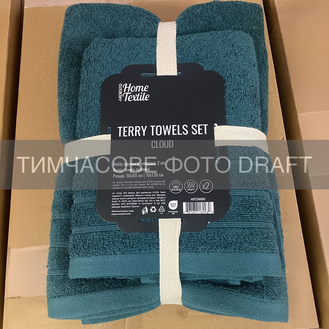 Terry towel set ARDESTO Cloud 50х90cm, 70х130cm, 2pcs, 100% cotton, dark green