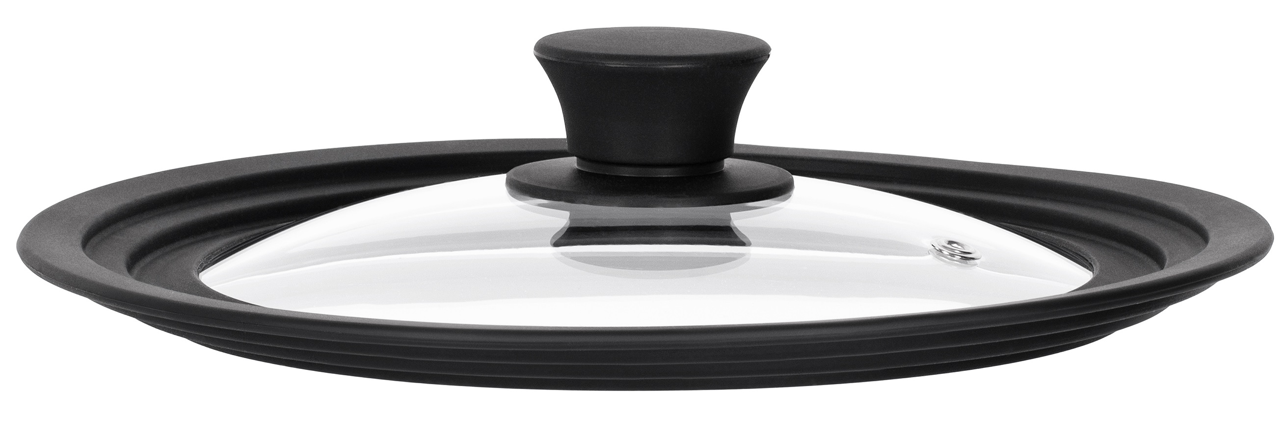 Ardesto Black Mars Smart lid with an adaptive size of 20/22/24cm. It is made of glass and silicone (black inserts), and has a steam hole. To make the accessory last longer, the manufacturer does not recommend washing it in a dishwasher.