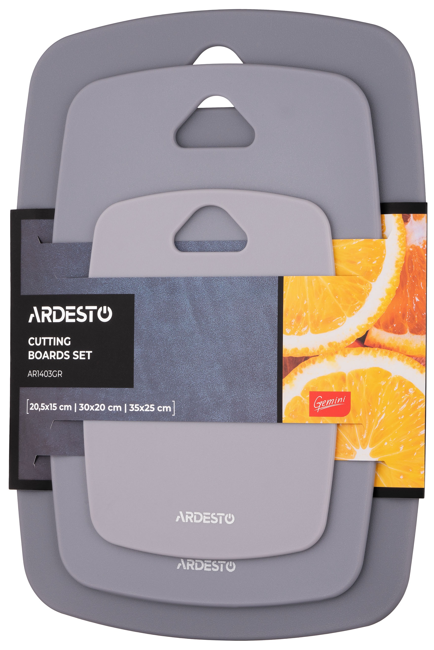 Набір дошок кухонних Ardesto Gemini, 3шт, 20.5×15см, 30×20см, 35×25см, пластик