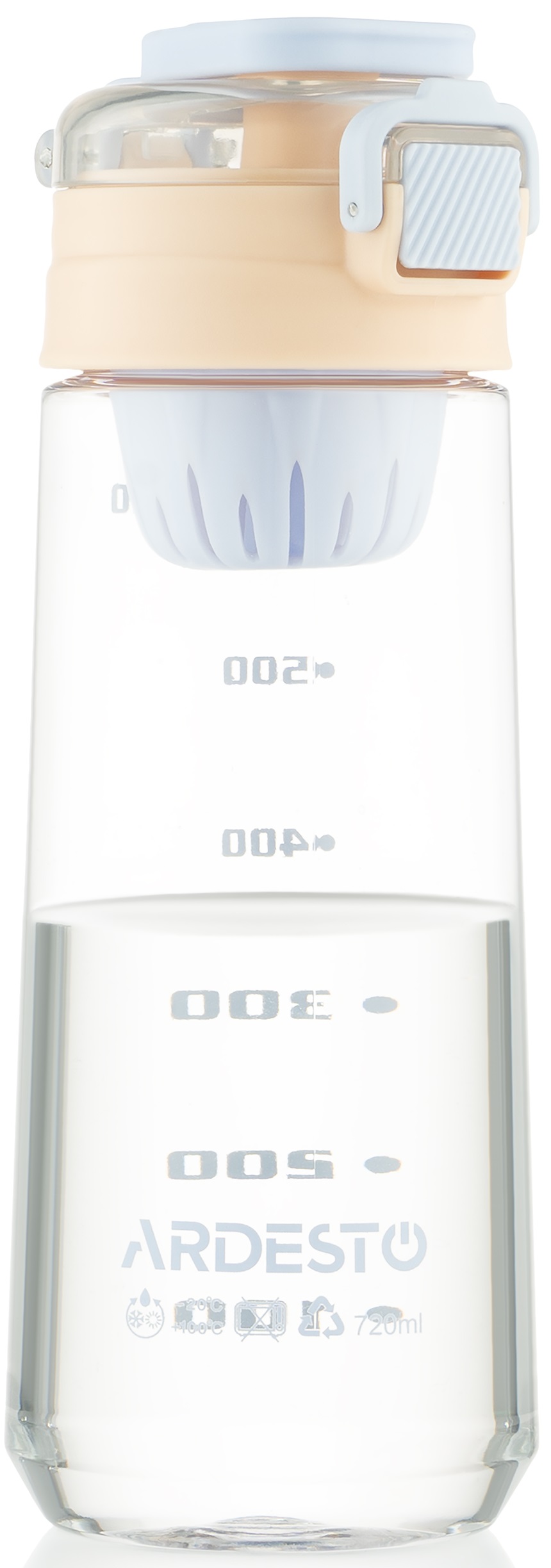 Спекотної днини, під час активної прогулянки чи тренування незамінним аксесуаром є пляшка ARDESTO Duo, яка перетворює звичайну воду на вишуканий напій із натуральними фруктовими нотками. Завдяки спеціальному відділенню для фруктів є змога створити унікальний мікс смаків і завжди почуватися енергійно. Об’єм 720 мл – оптимальний для щоденних справ і подорожей. Герметична кришка гарантує зручність під час транспортування, а можливість миття в посудомийній машині робить догляд за пляшкою максимально простим.