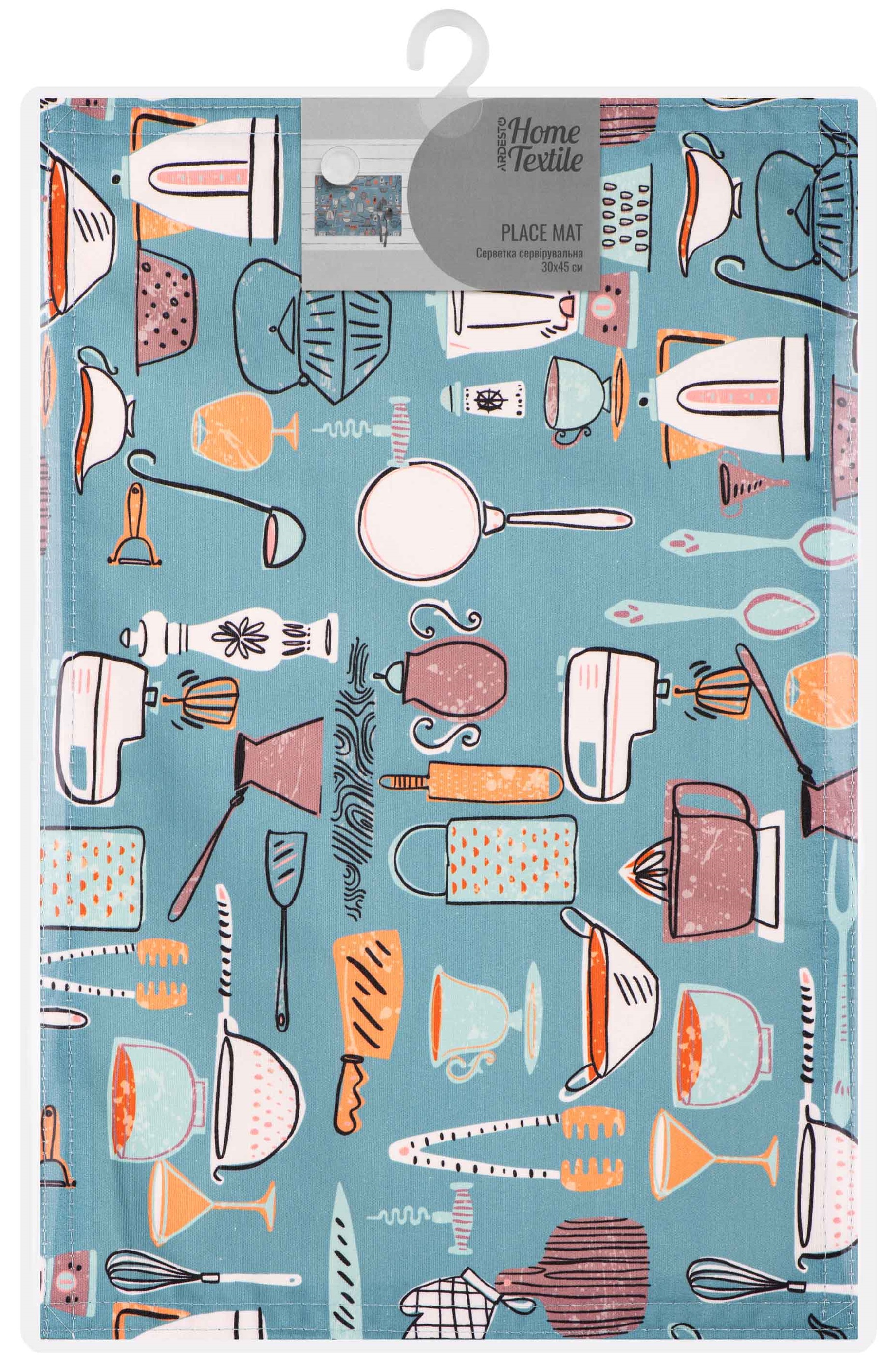Сервірувальна серветка – це не лише засіб для збереження чистоти, але й елемент декору, який допоможе створити особливу атмосферу на столі. Розмір виробу у дизайні Cookery становить 30 × 45 см. Виготовлено серветку з поліестеру (90 %) і бавовни (10 %), забезпечуючи тривалий термін слугування. Збереження властивостей виробу гарантує дотримання таких правил догляду: прання в пральній машині за 30 °C на делікатному режимі; сушіння в машині за низької температури; заборона відбілювання; заборона чищення будь-яким розчинником, крім трихлоретилену; прасування за температури до 110 °C.