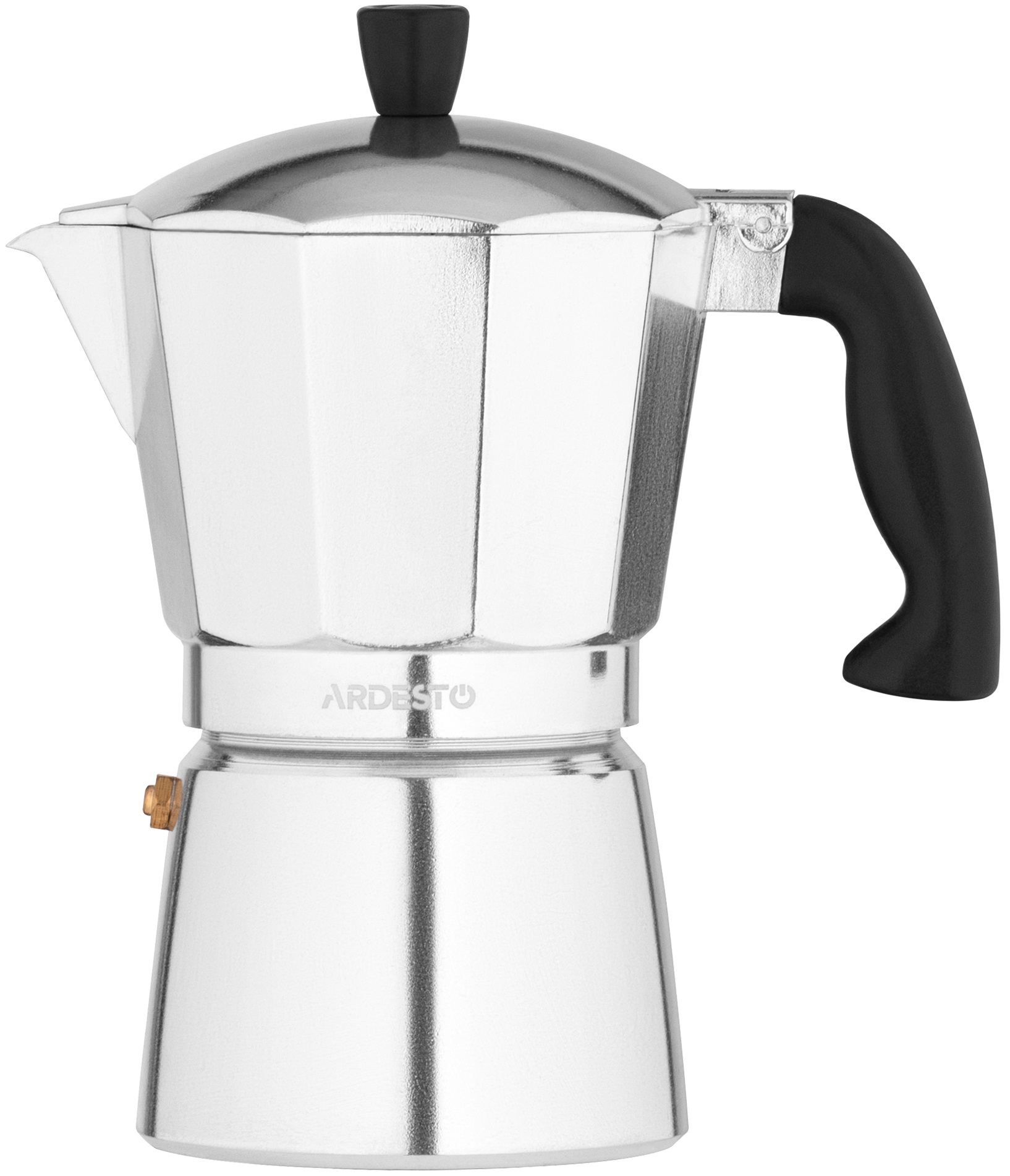Кавоварка виготовлена з алюмінію, проте ризик обпекти руки повністю усунений, адже конструкцією передбачено руків’я з нейлоновим покриттям. Об’єм виробу – 240 мл, що еквівалентно шести горняткам кави. Гейзерна кавоварка ARDESTO придатна до використання на газових, електричних, склокерамічних і галогенних плитах. Не рекомендовано миття в посудомийній машині.
