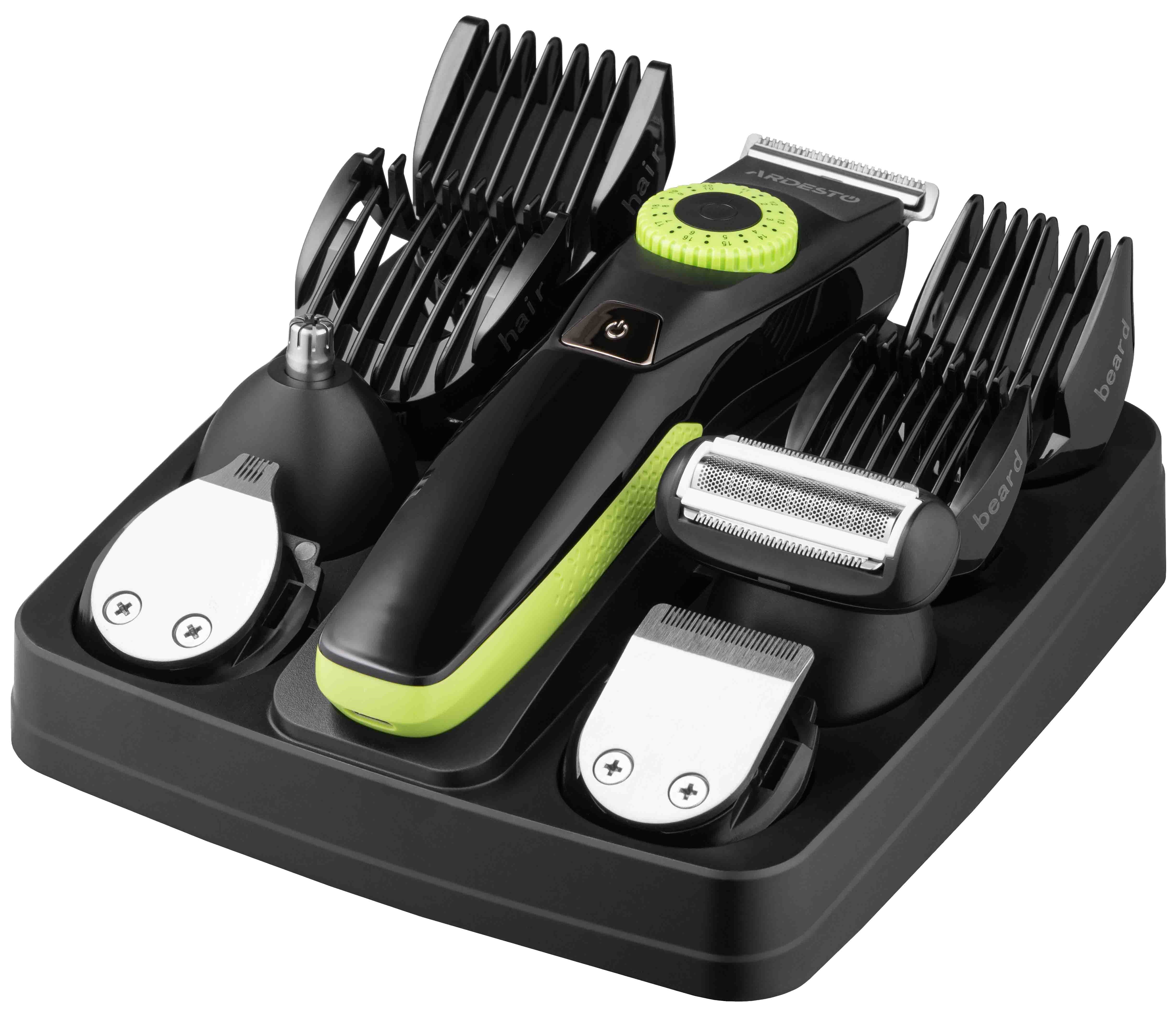 У комплекті надано п’ять насадок: для підстригання волосся, бороди, для вистригання модельних елементів, тример для тіла, а також окрема насадка-тример для носа і вух. Чотири насадки-гребінці з набору допоможуть регулювати довжину стрижки від 1 до 20 мм. Водостійкість класу IPX6, легке очищення і можливість миття насадок під проточною водою – запорука легкого догляду. Дротова чи бездротова робота, швидке заряджання (≤ 180 хв) і тривалий час автономної роботи (150–180 хв) роблять пристрій максимально зручним у використанні.