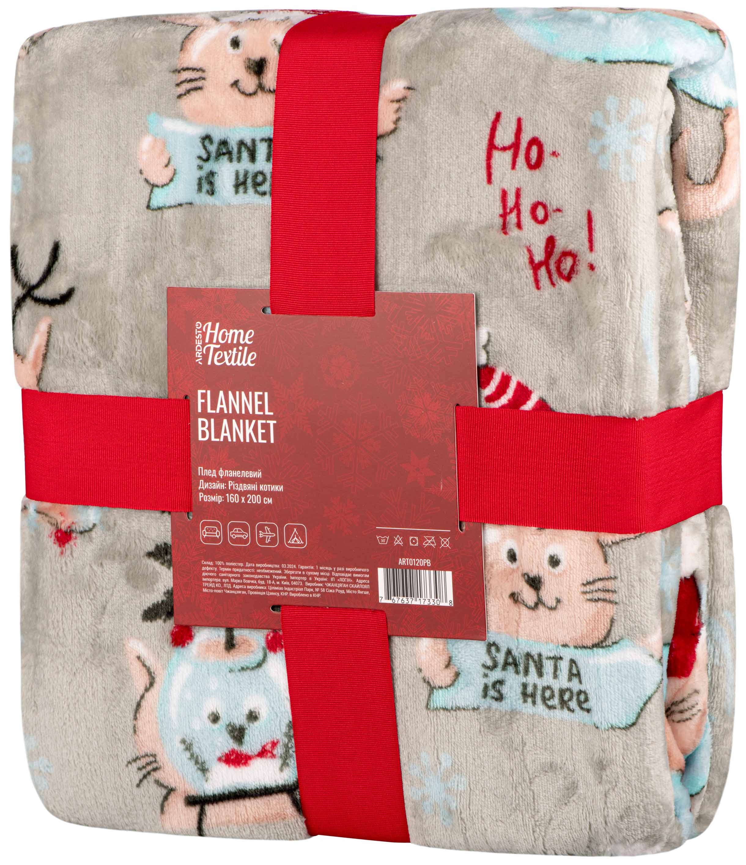 Плед Ardesto Christmas Flannel 160х200см, 100% поліестер, різдвяні котики