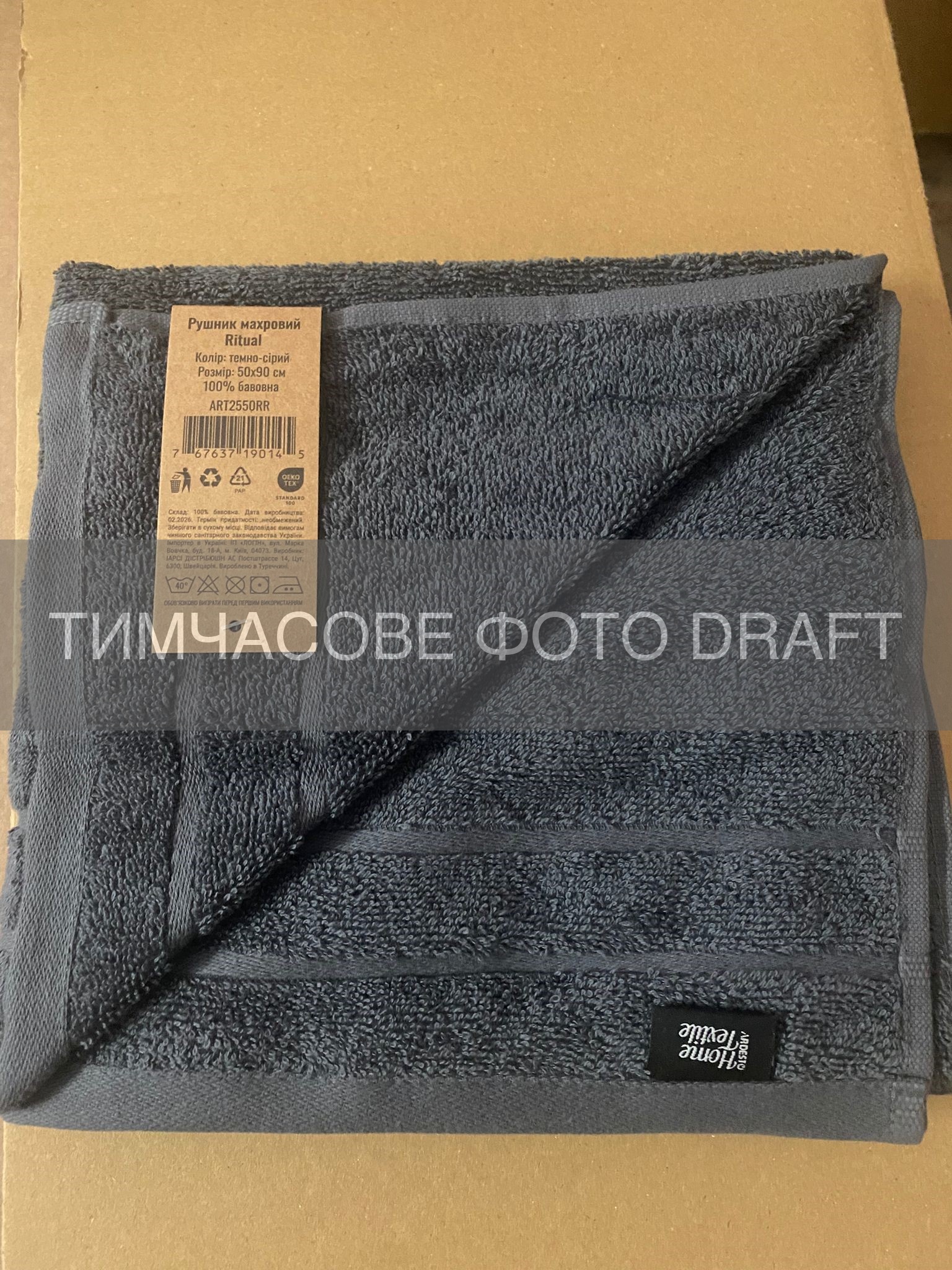Рушник махровий ARDESTO Ritual 50х90см, 100% бавовна, сірий темний