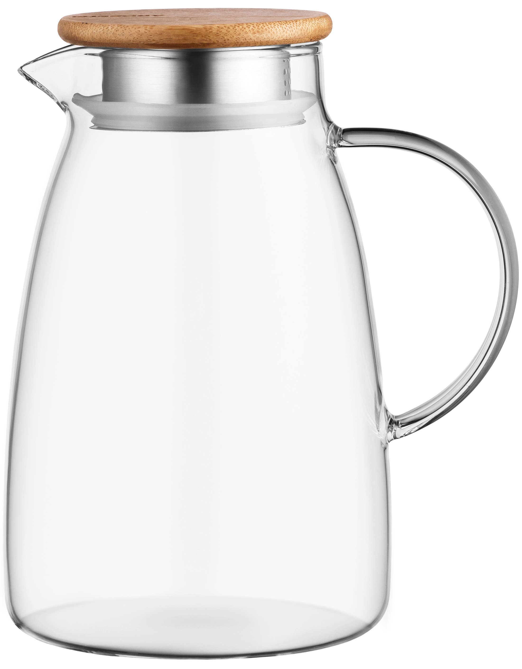 Кувшин с крышкой ARDESTO, 1500мл, боросиликатное стекло, бамбук, прозрачный AR2615ST