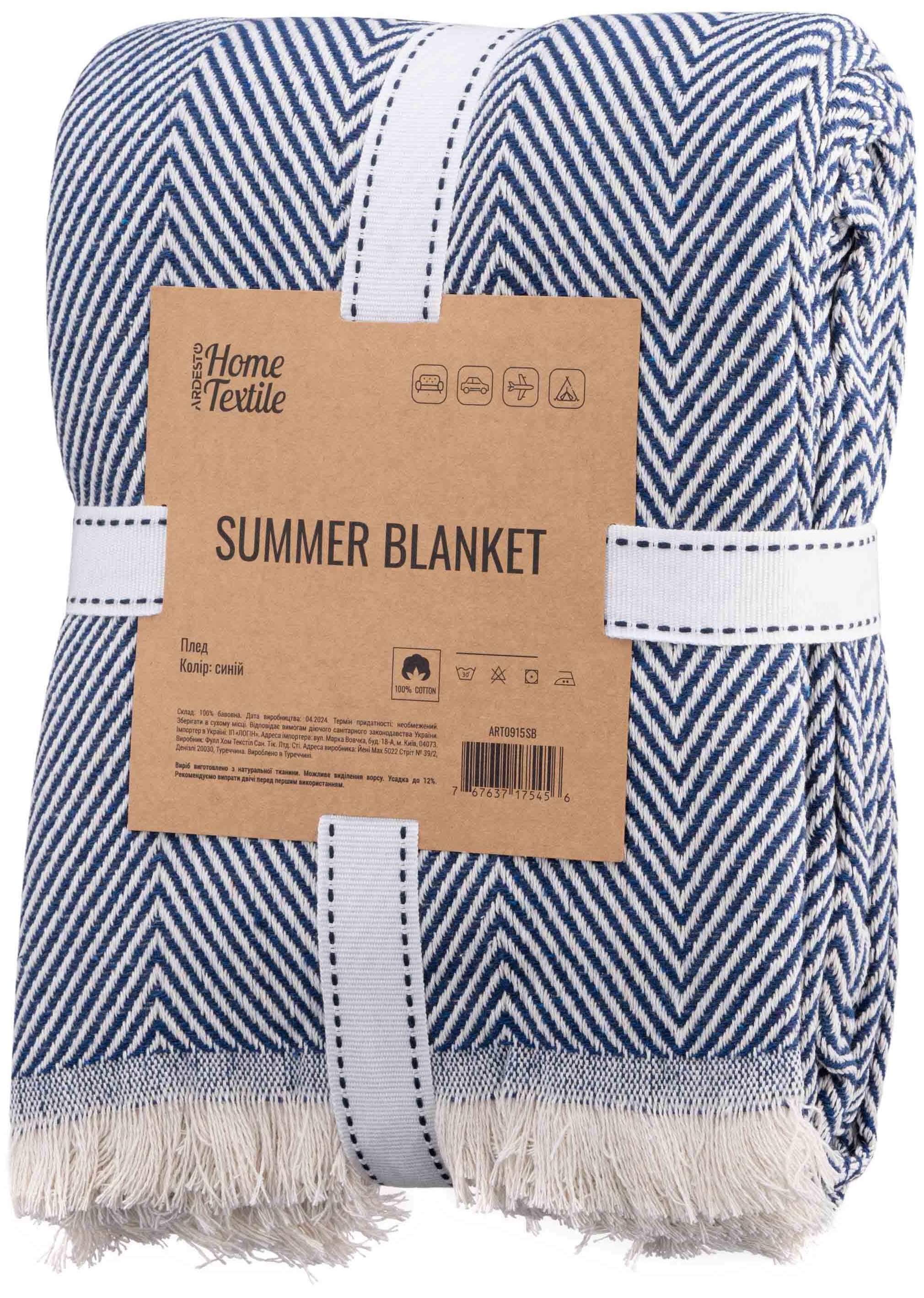 Плед ARDESTO Summer, 140х190см, 100% хлопок, синий ART0915SB