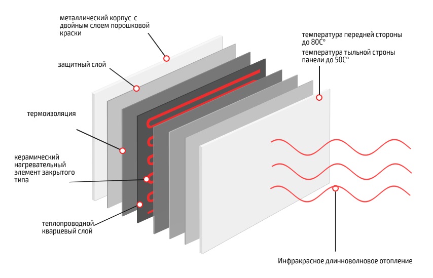 Магнезитовая плита обеспечивает качественную и безопасную передачу инфракрасных тепловых волн через керамическую поверхность, что обеспечивает максимальную отдачу тепла в помещение. Этот эффект усиливается теплоотражающим экраном, поставляемого в комплекте. Холодный воздух, проходя через электропанель, также нагревается и температура в комнате быстро стабилизируется.