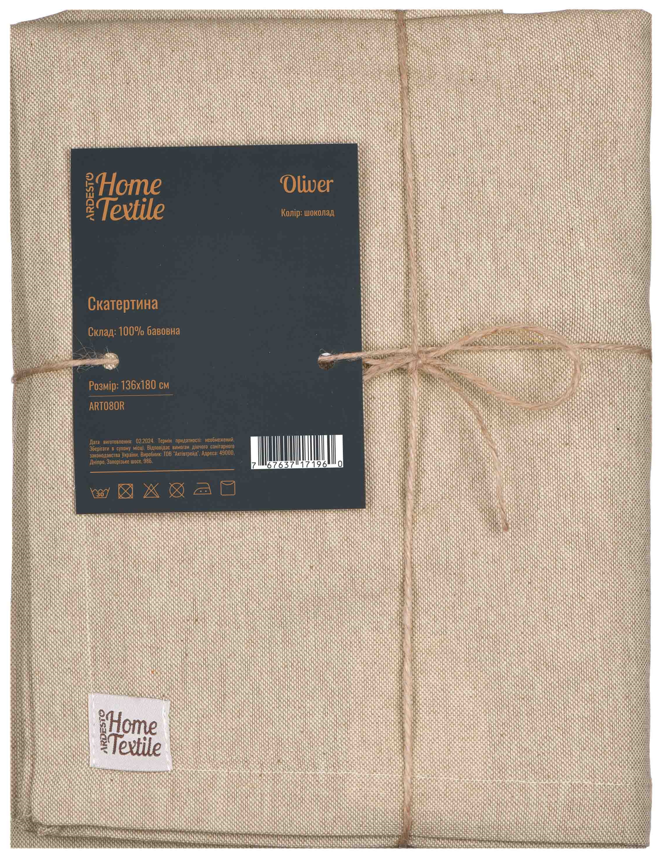 Скатерть ARDESTO Oliver, 136х180см, 100% хлопок, шоколад ART08OR