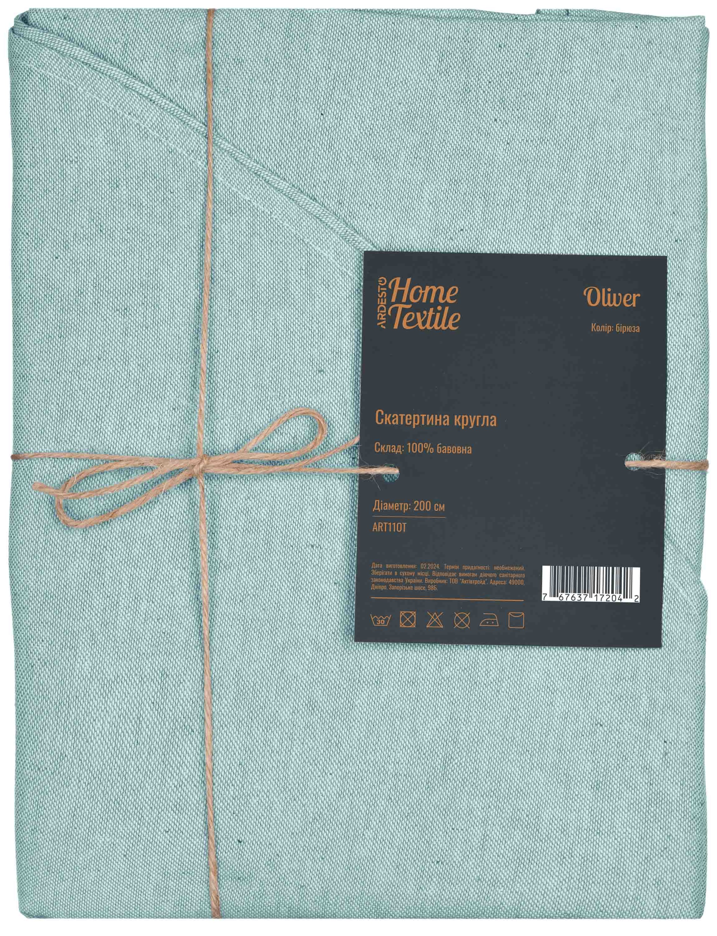 Скатерть ARDESTO Oliver, 200см, 100% хлопок, бирюза ART11OT