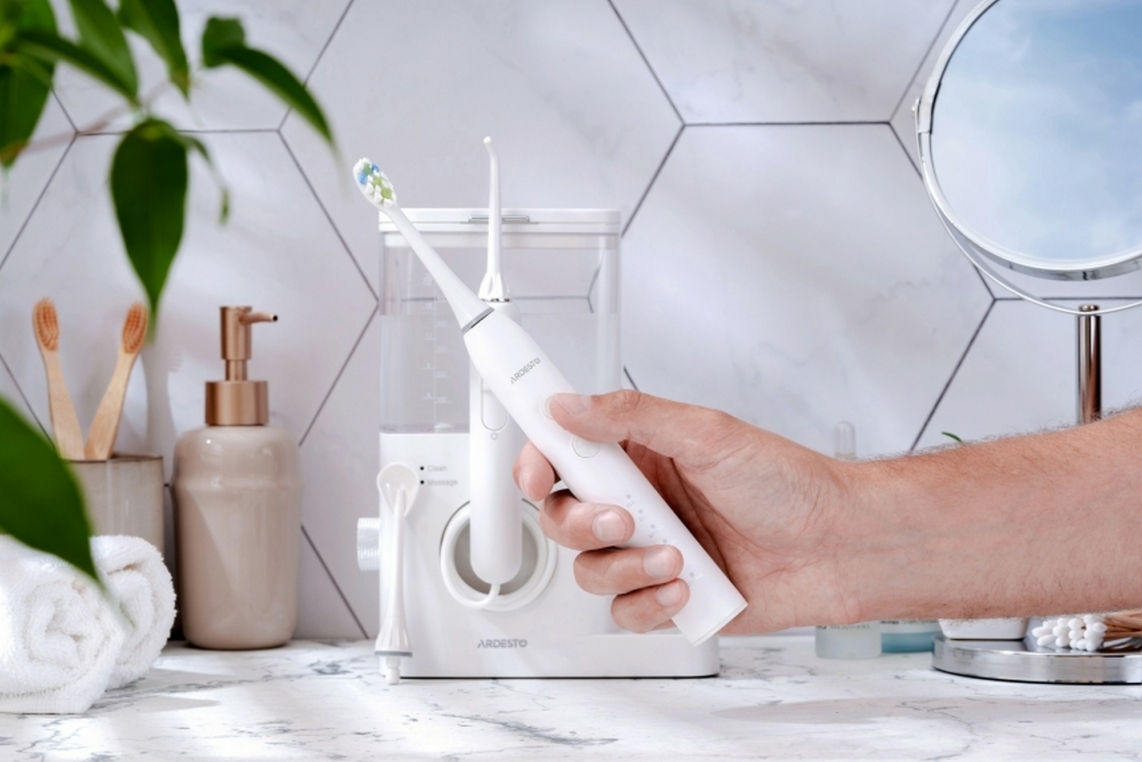 2 в 1: соединяет электрическую щётку и стационарный резервуар 600 мл, делая ежедневный уход за полостью рта эффективным и гигиеничным.