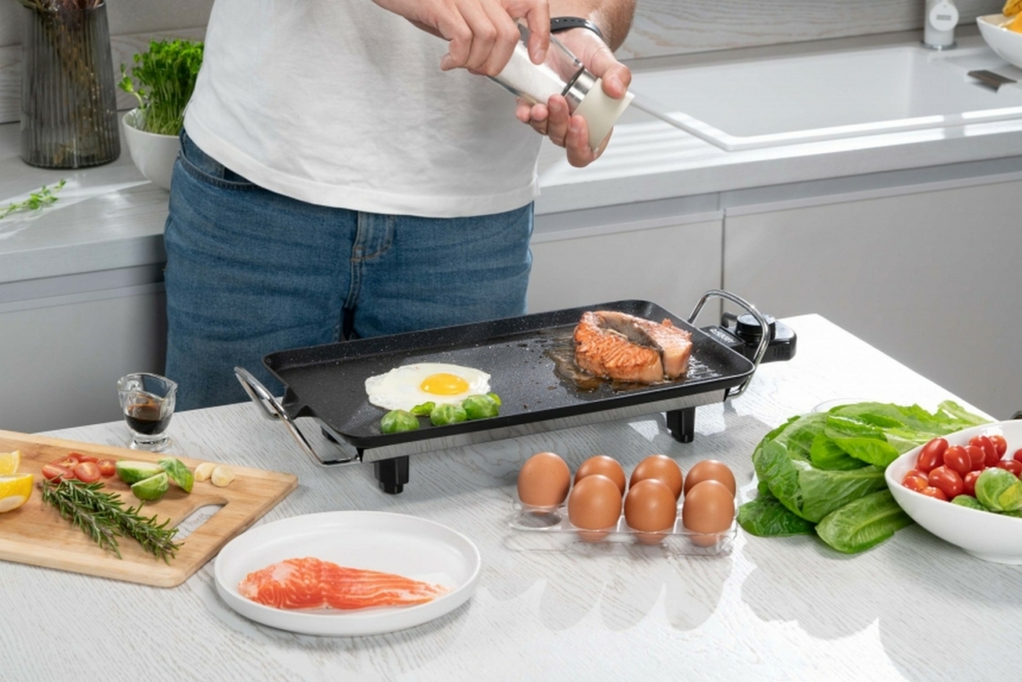 Большая рабочая поверхность с антипригарным покрытием делает приготовление удобным как для семьи, так и для большой компании.