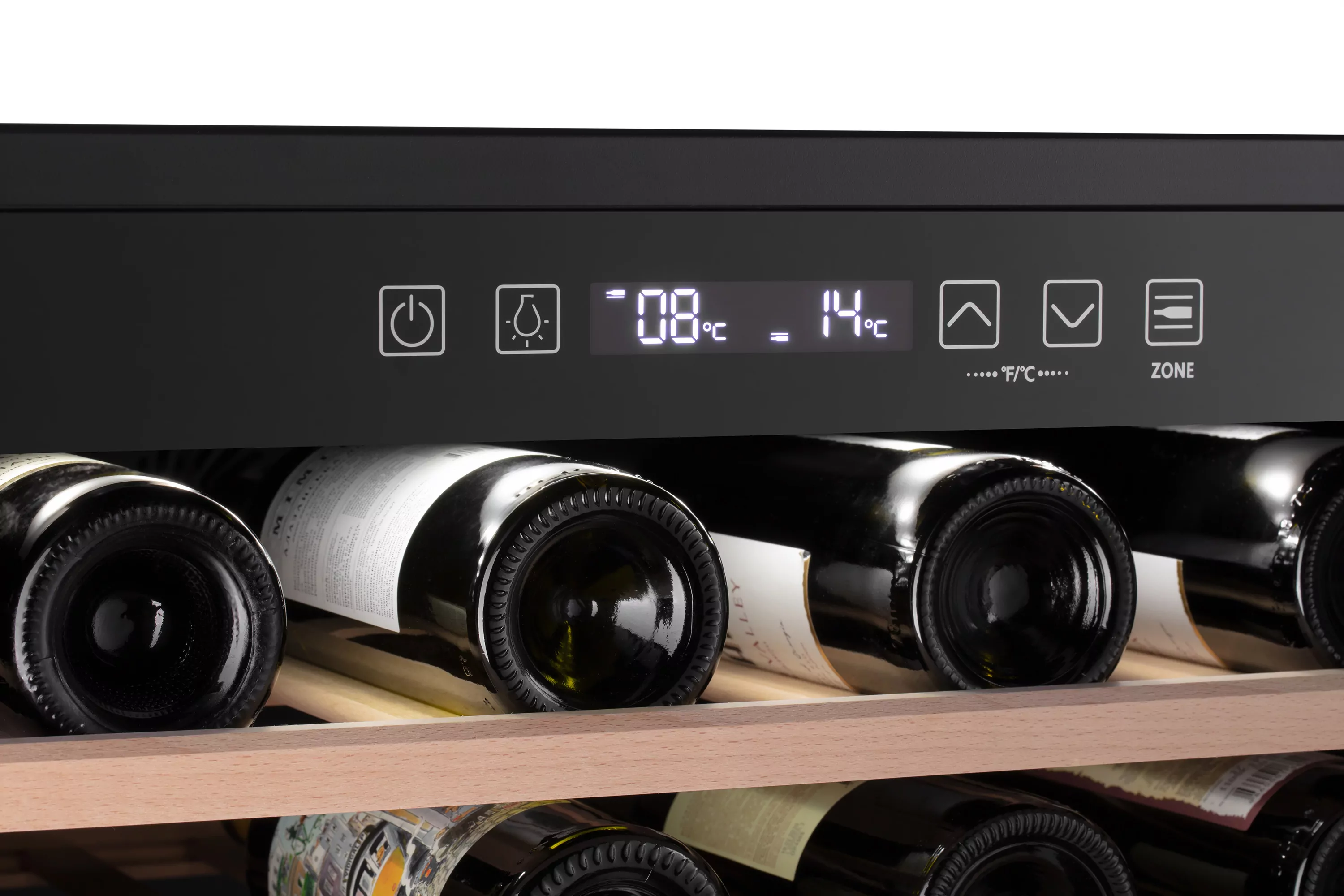 Ardesto WCBI-M44 – вбудовувана винна шафа на 44 пляшки зі скляними дверима, дерев’яними полицями з металевими направляючими та двома окремими температурними зонами.